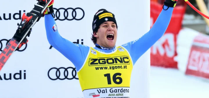 The 24-year-old Italian got his first career podium on the Saslong in Super-G, dedicating it to the memory of Matteo Franzoso.