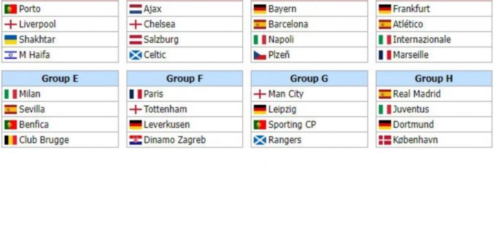 Champions League, all group stage qualifiers