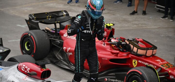 George Russell finishes ahead of Lewis Hamilton, fourth a furious Charles Leclerc.
