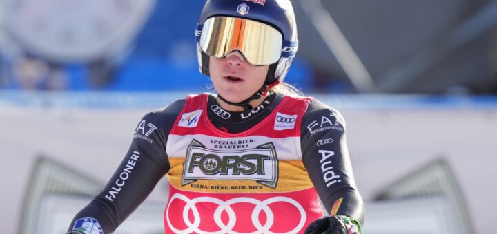 The champion from Bergamo, triumphant on Friday in the first downhill in Cortina, slipped in the final: she still held the lead in the specialty.