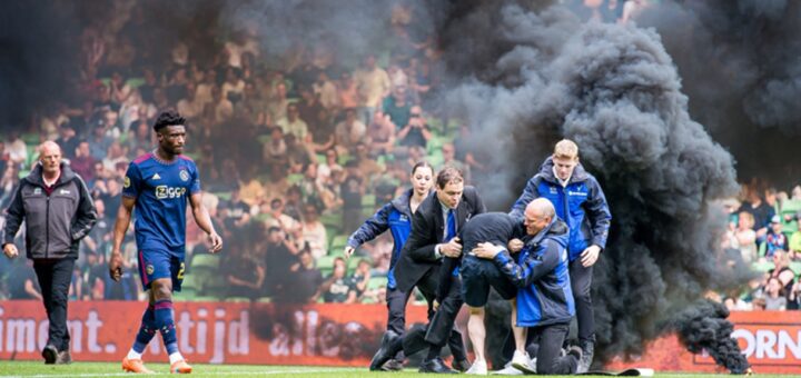 Violent protest enacted by the home fans.