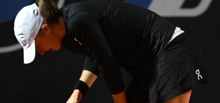 The Polish world No. 1 suffered a knee problem in the 2-2 third set of the quarterfinal against Russian-Kazakhstan.