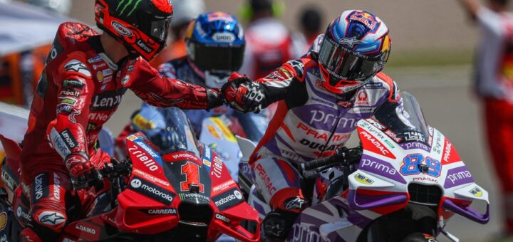 The Spaniard takes the lead in the opening bars and gives the victory to the Ducati of the Prima Pramac Racing team. The reigning world champion and Jack Miller complete the podium.