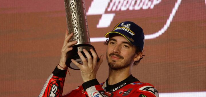 First win in the premier class for the Team Gresini centaur. Bagnaia stretches ahead of Martin, now 21 points distant in the overall standings.