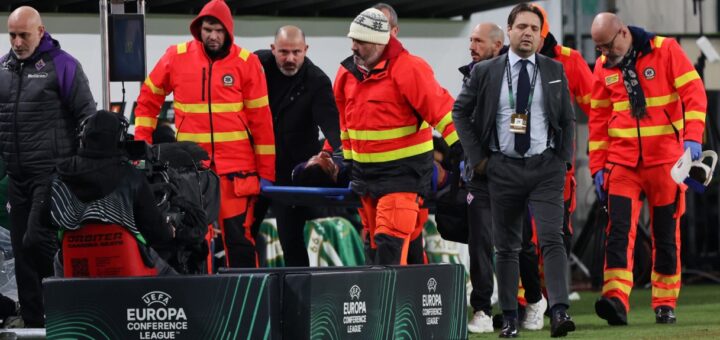 The purple striker left on a stretcher during the Conference League match against Ferencvaros.