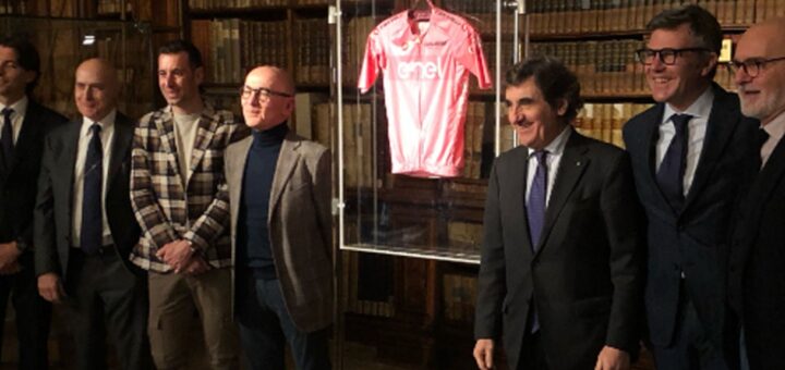 The symbol of primacy at the Giro presented at the Brera Art Gallery, Milan.