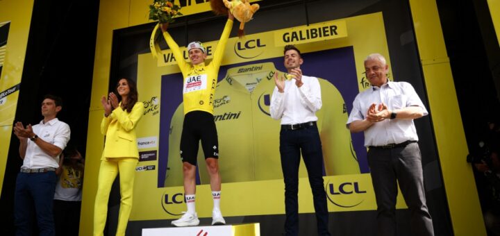 The Slovenian places an important treble, arriving alone, first, at the finish line in Valloire: ousted Carapaz.