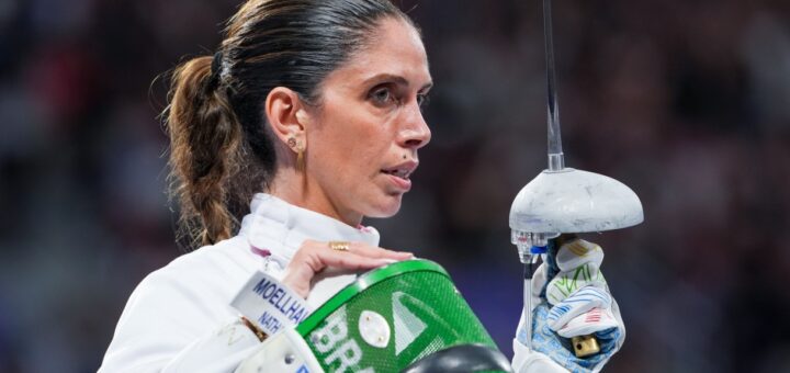 The 38-year-old Milan-born epee player competing for Brazil has a tumor in her coccyx but still wanted to be in the competition; she will undergo surgery on Monday.