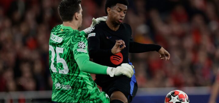 Barcelona heavily penalized in the first half against Benfica by two glaring mistakes by the Polish goalkeeper.