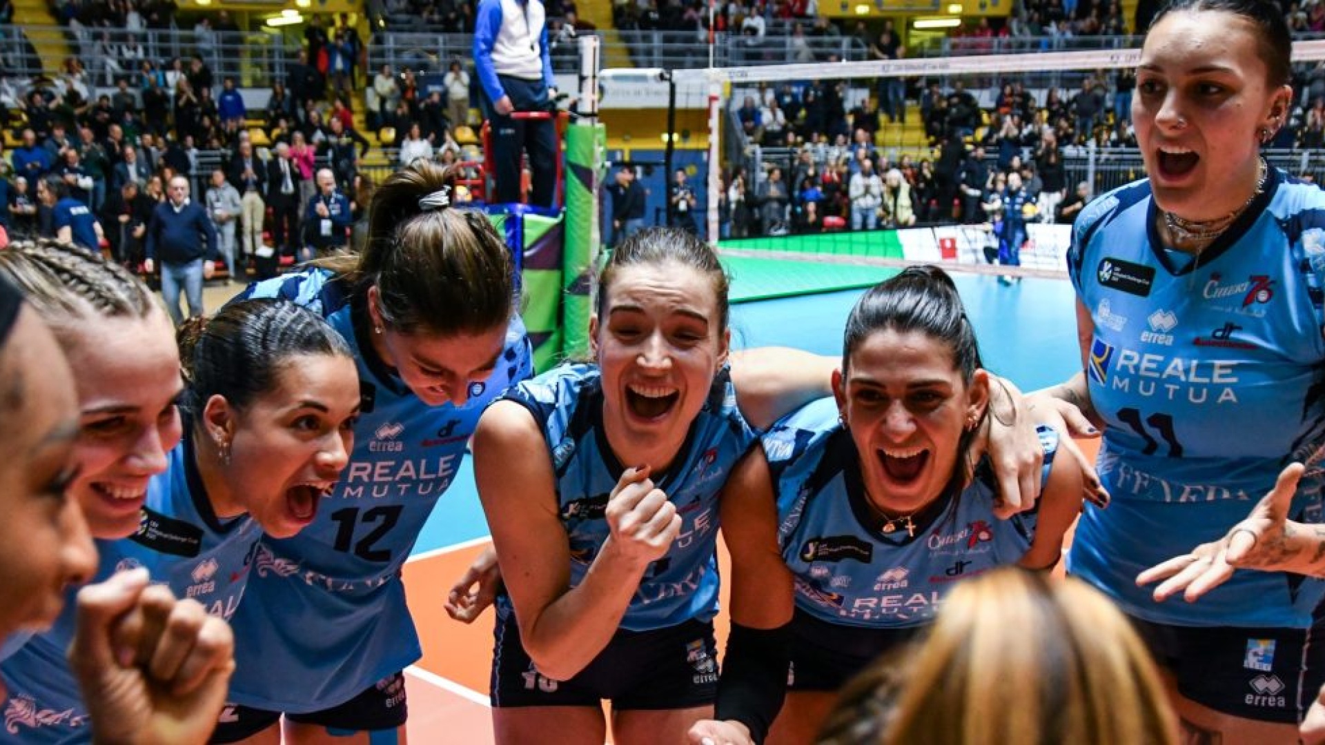 After 34 victories in as many matches played Reale Mutua Fenera Chieri ’76 in fact loses its unbeaten streak in Europe, but hits the goal dreamed by all the biancoblù people by conquering the CEV Challenge Cup finals. This was the epilogue of the return semifinal that saw the Galatasaray Daikin overturn the score of the first leg by imposing themselves 1-3 at the Pala Gianni Asti in Turin, then the Chieri women exult 15-13 in the decisive golden set. In more than two hours of high-intensity play, Galatasaray, if there was ever any doubt about it, confirmed that it’s a real team. So did Chieri, which after winning 25-22 in the first set lost 20-25 in the second, always chasing, 23-25 in the third where it came back from 16-21 to 23-24 but missed the breakthrough, and 25-27 in the fourth after cancelling four match balls. The happy ending came in a hard-fought point-to-point golden set that the biancoblù made theirs by throwing their hearts over the obstacle (15-13).