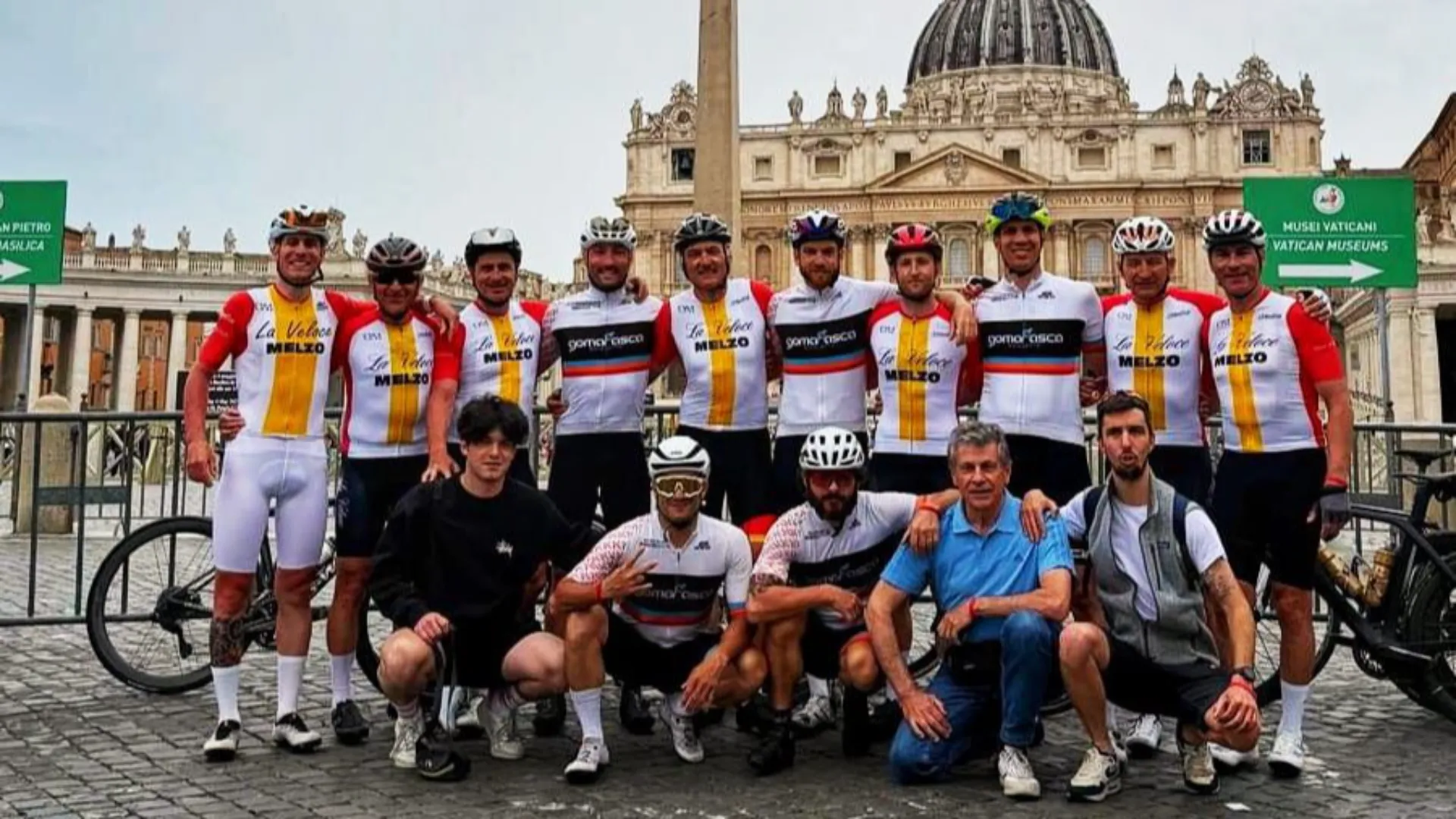 The athletes from the Gomarasca Bike Club and La Veloce Melzo arrived in Rome on days when the capital was overrun with faithful from all over the world to honor Pope Francis, who passed away on April 21.