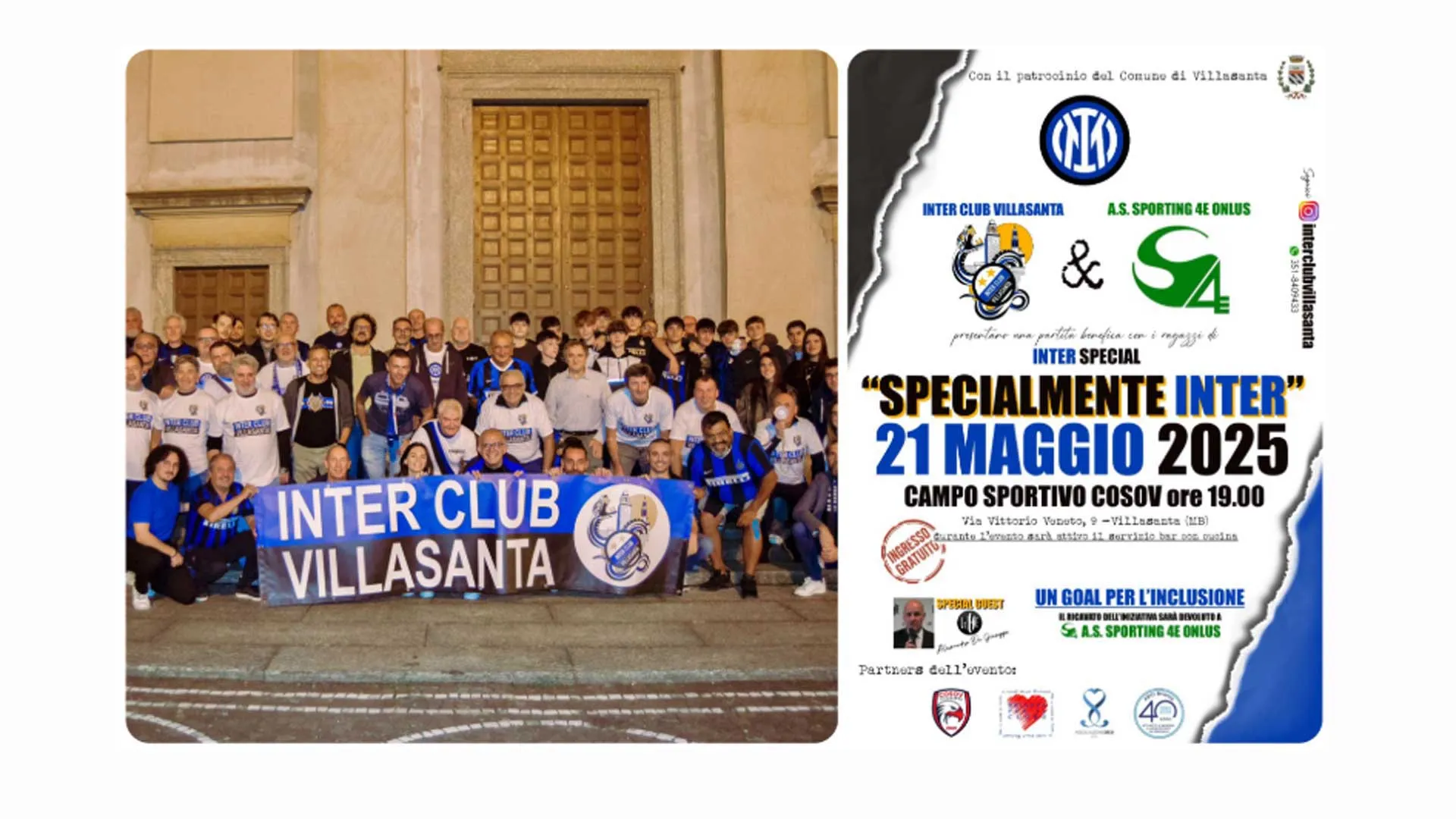 In the Inter household, the countdown to Saturday, May 31, has begun. Ten days earlier, on the 21st, a Wednesday, there is another appointment not to be missed, for its splendid purposes. In Villasanta (MB), at the Cosov sports field (Via Vittorio Veneto 9), ‘Especially Inter’ will be staged starting at 7 pm. A representative team of boys from the local Inter Club – which organized the event – and the Inter Special team (fourth category Figc) will compete in a friendly match. There will be a bar with kitchen during the evening, which will be free admission, sponsored by the Municipality of Villasanta and embellished by the presence of Alessandro De Giuseppe, ‘Hyena’ of the successful Mediaset program who will entertain everyone with his verve and sympathy.