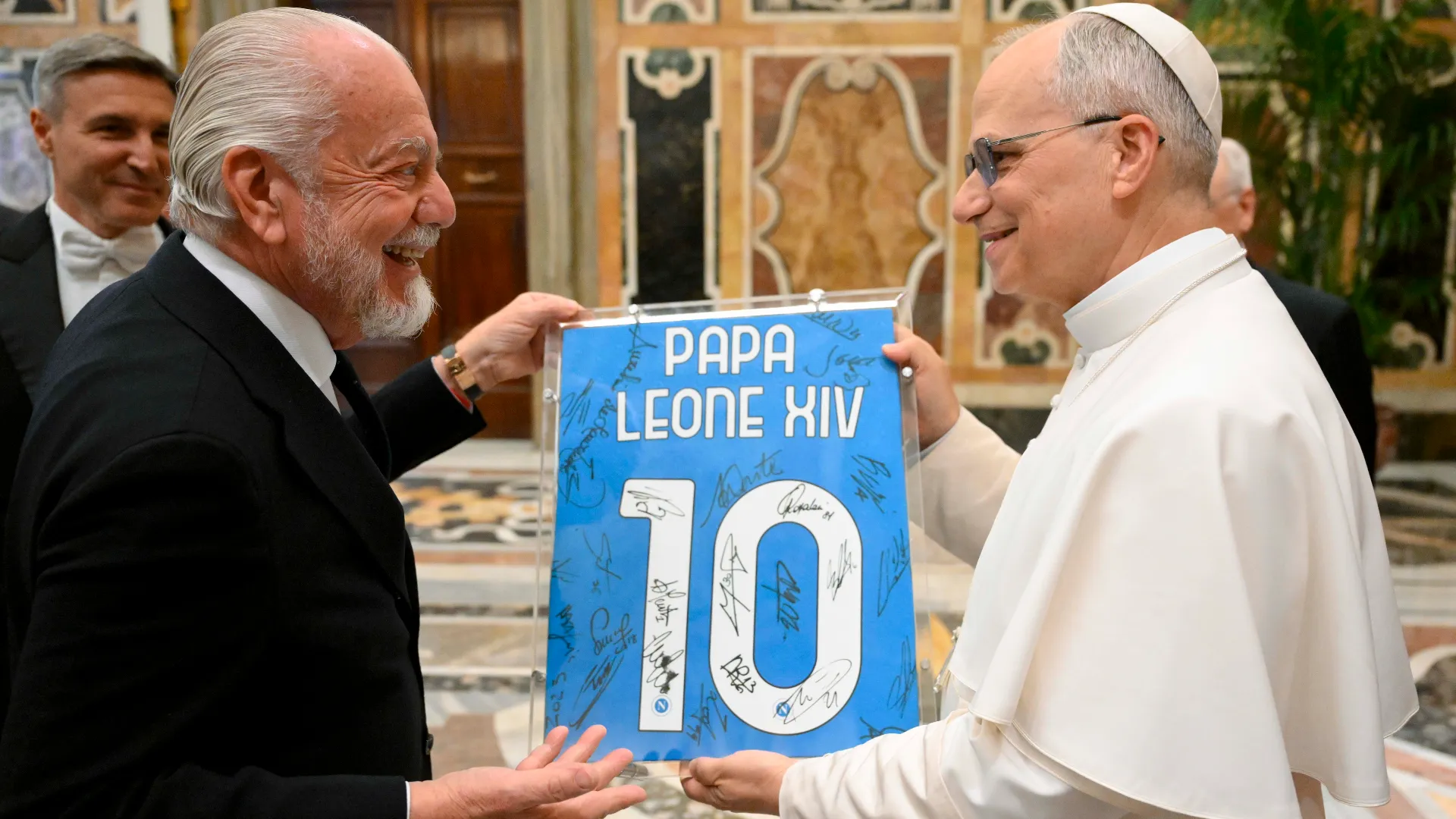 On the heels of the celebrations on the uncovered buses that paraded along the Caracciolo waterfront, Napoli went to the Vatican for a private audience with Pope Leo XIV, who welcomed the blue club with a joke: “The press says I am a Romanista. But welcome: congratulations on winning the championship! A great celebration for the city of Naples!”.