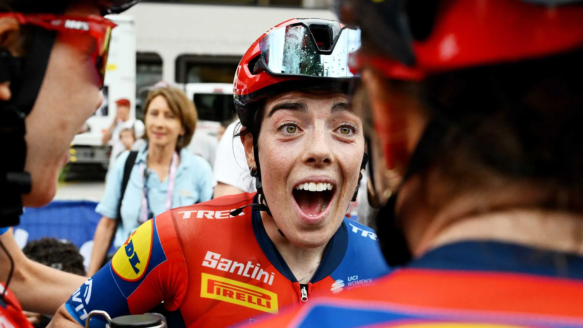 Too late was the reaction of the big group, which finished 26 seconds behind, set by Soraya Paladin. The main peloton of 21 athletes did not include Lotte Kopecky and Marianne Vos, both of whom struggled on the last climb. In the general classification, Henderson – who also wears the Maglia Rossa and Maglia Azzurra – now leads with 15″ over Marlen Reusser and 31″ over Elisa Longo Borghini.