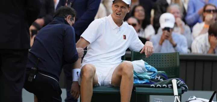 The world number one fell early in his match with Dimitrov, sustaining a minor elbow injury