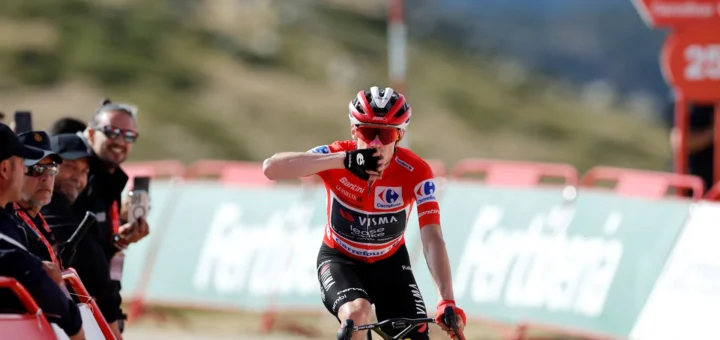 The two-time Tour de France winning Dane arrived alone on the'last summit of the Iberian stage race.