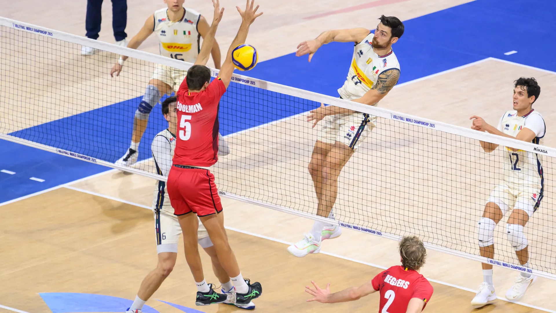 L’Itala succumbed at tie-break 2-3 (23-25, 20-25, 25-22, 25-21, 13-15) in the second match of the world championships. De Giorgi chose the same lineup as in the debut match with the Giannelli-Romanò diagonal, Michieletto and Bottolo the hammers, Anzani and Russo in the middle with Balaso free. Belgium on the court with D’Hulst at setter, Reggers opposite, Deroo and Rotty setters, Coolman and D’Heer the centerbacks with Lantsoght free.