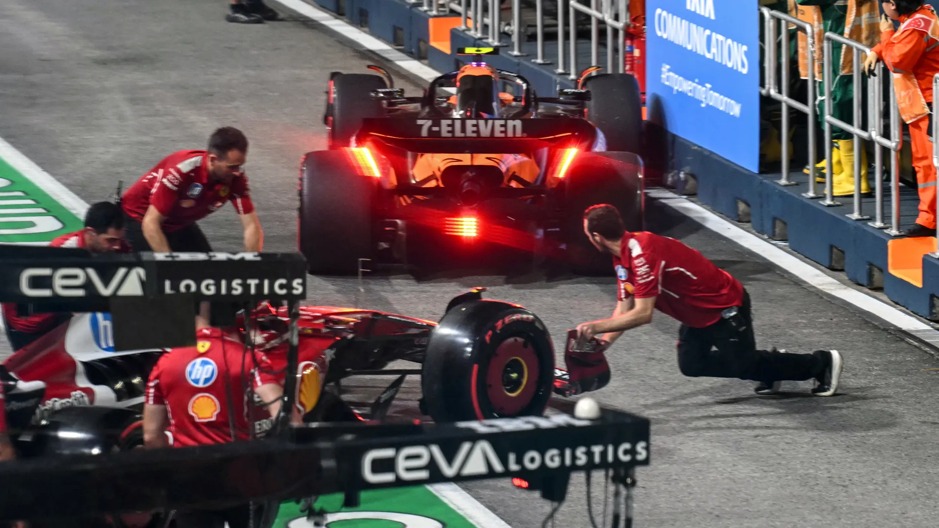 Ferrari, FP2 disaster in Singapore: Charles Leclerc vs. Lando Norris in the pits
