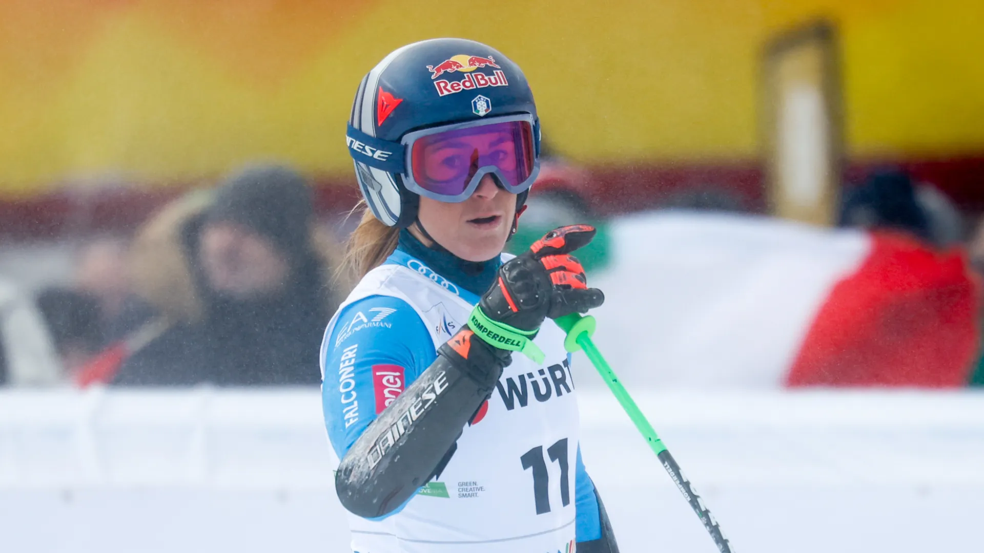 Sofia Goggia on podium in Crans-Montana with tragedy still in mind