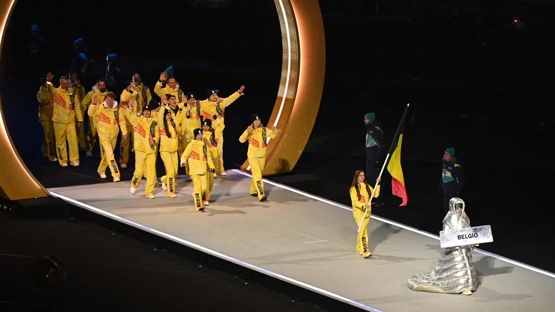 Belgium entered the iconic San Siro Stadium in tenth position around 8:50 p.m. A total of fifteen Belgian athletes participated in the opening ceremony of the Winter Olympic Games, and for the first time in the history of the Games, the opening ceremony was held at four different venues, and the Belgian team was represented at three of the four venues. Eleven female athletes were present at Milan’s San Siro, where Hanne Desmet carried the flag.