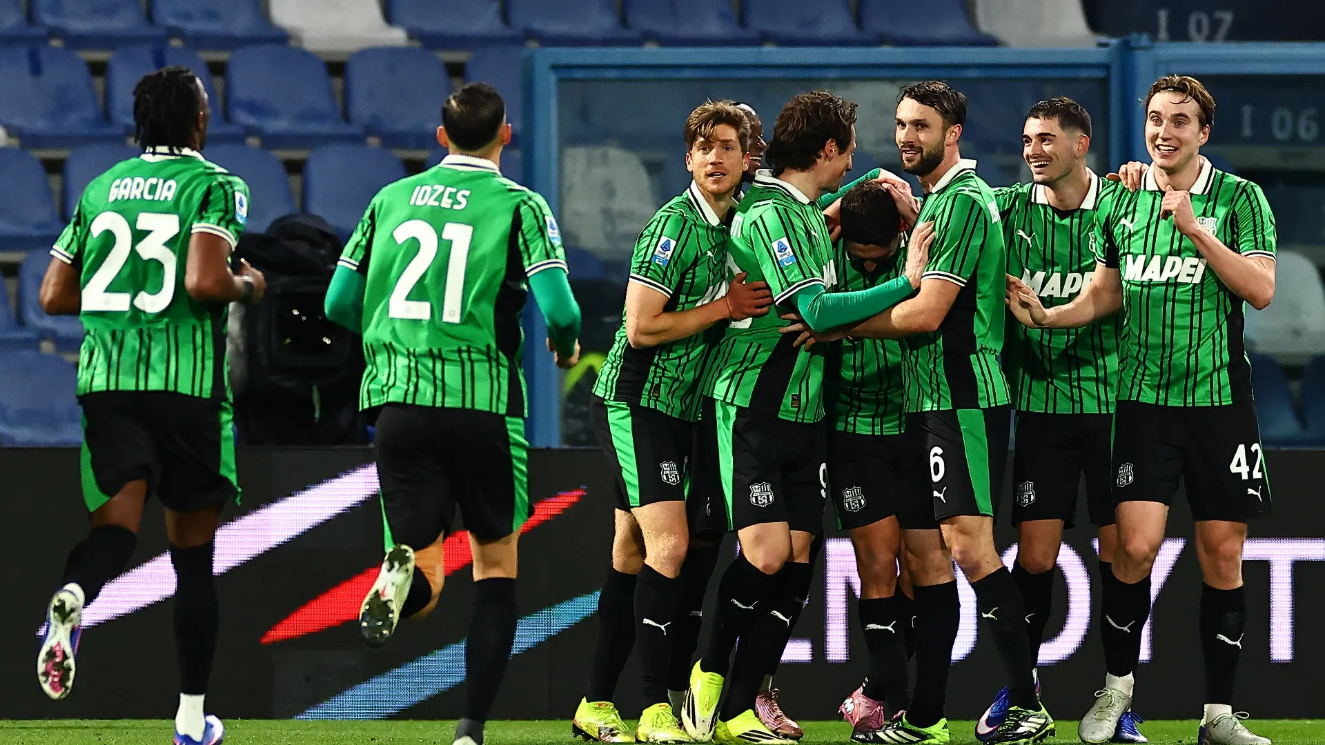 Sassuolo routed Verona 3-0 in the Serie A 26th-day advance played at the Mapei Stadium. The neroverdi won thanks to Pinamonti&#8217s goal and Berardi&#8217s brace, temporarily climbing to eighth in the standings, on 35 points. Fourth defeat in the last five games for Verona, still last on 15 points along with Pisa.