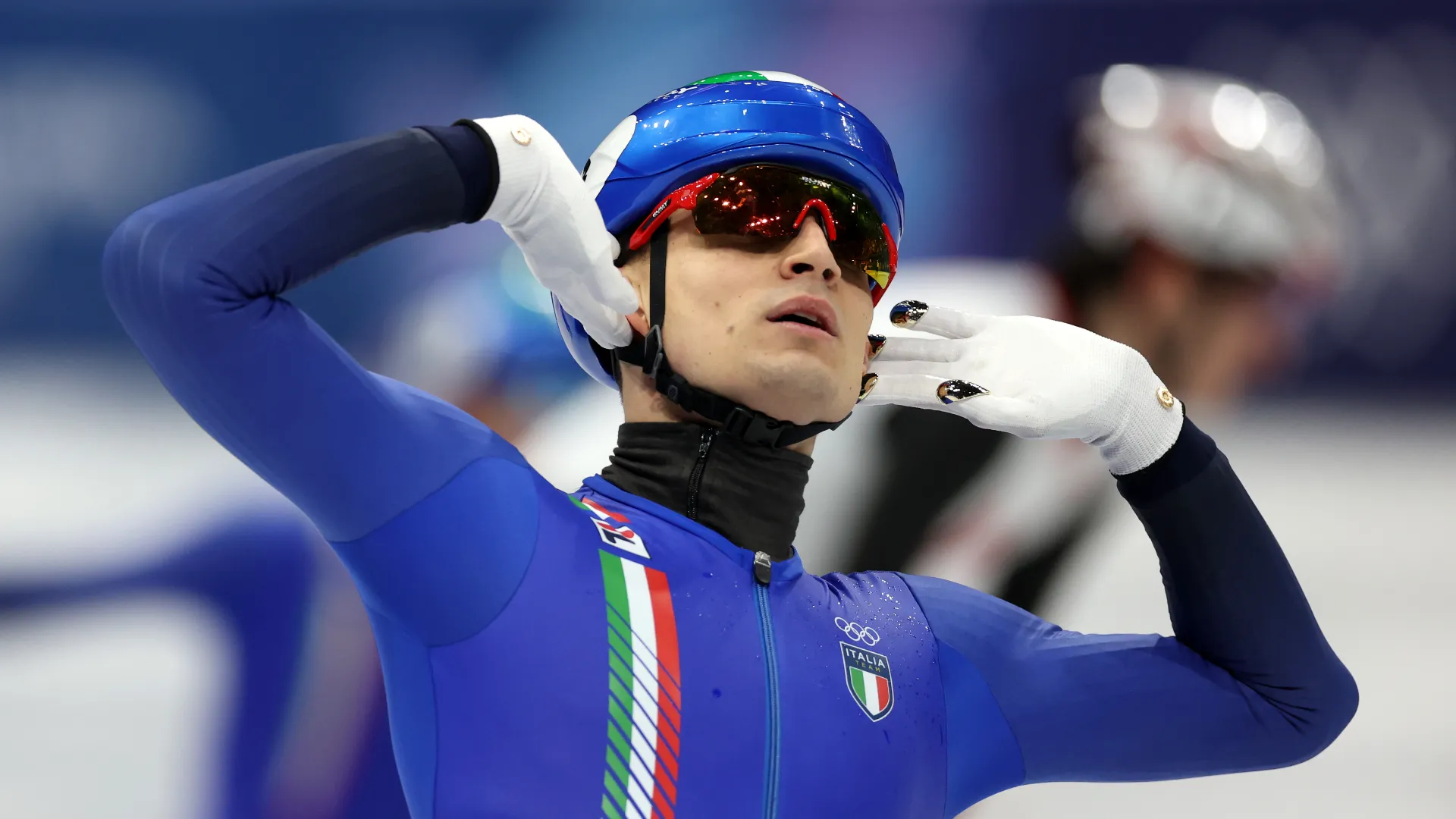 Il campione ha deciso di tagliare così il traguardo della staffetta mista di short track