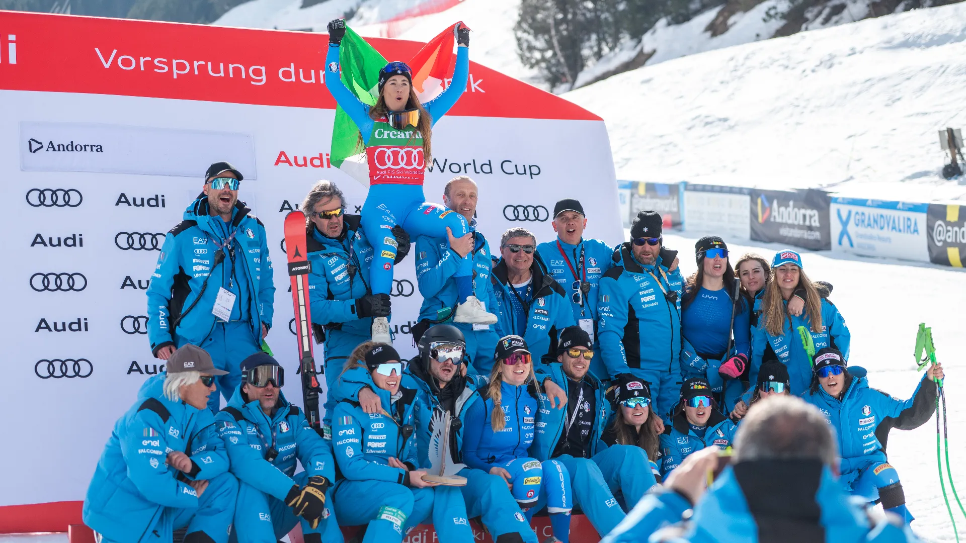 Sofia Goggia ha raccontato lo spirito di squadra che caratterizza la squadra azzurra di sci alpino in una intervista a Vogue.it. La sciatrice bergamasca ha parlato a margine della discesa libera di sabato vinta da Laura Pirovano in Val di Fassa, sulla pista La VolatA. Al termine della gara, Goggia ha abbracciato la sua compagna: “Condividiamo tanto tempo insieme, in questi anni Laura è sempre stata a ridosso del podio, e parliamo di pochissimi centesimi di secondo. Sono, siamo, molto contente per lei”.