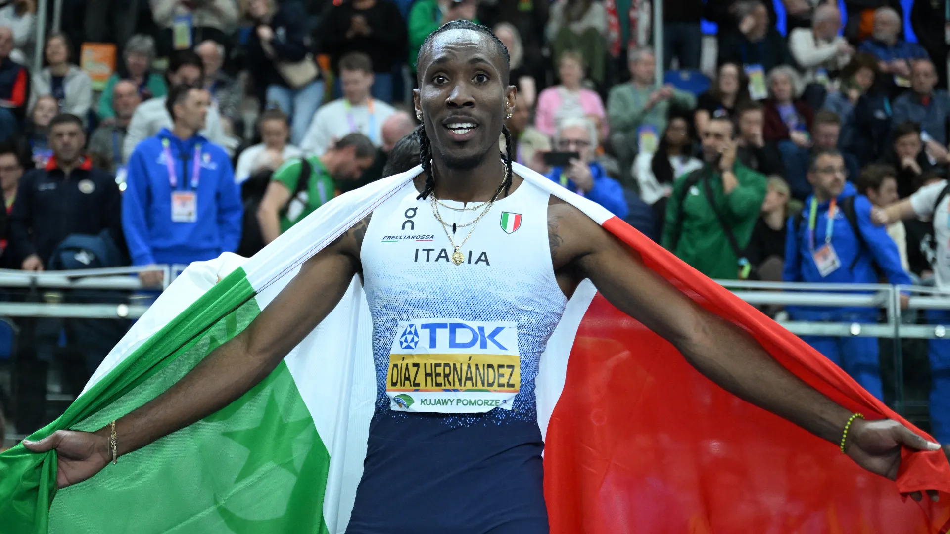 Riecco Andy Diaz. Il saltatore azzurro di origini cubane a dodici mesi dal trionfo iridato di Nanchino si è riconfermato campione del mondo indoor, vincendo la finale di salto triplo ai Mondiali di atletica Indoor a Torun, Polonia.
