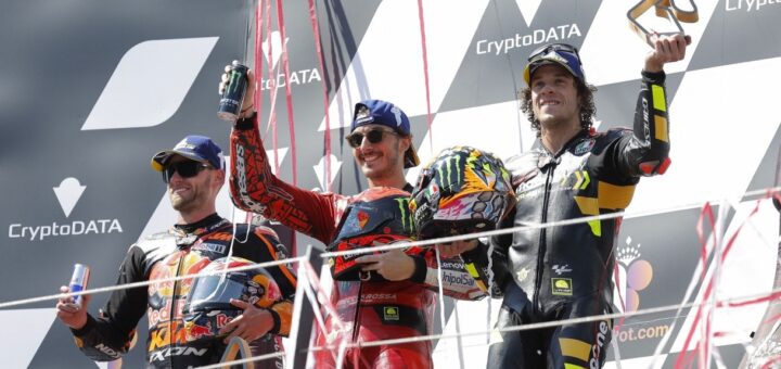 Ducati’s world champion and world championship leader remains in the lead the entire race, preceding Brad Binder and Bezzecchi.