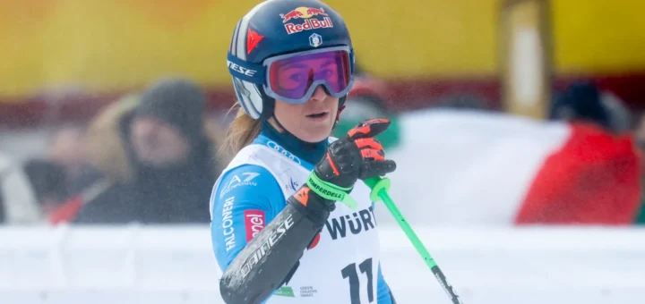 Excellent performance by the Valle d’Aosta girl, on her return to the race, in the first run of the Kronplatz giant slalom, while the Bergamasque girl exits immediately